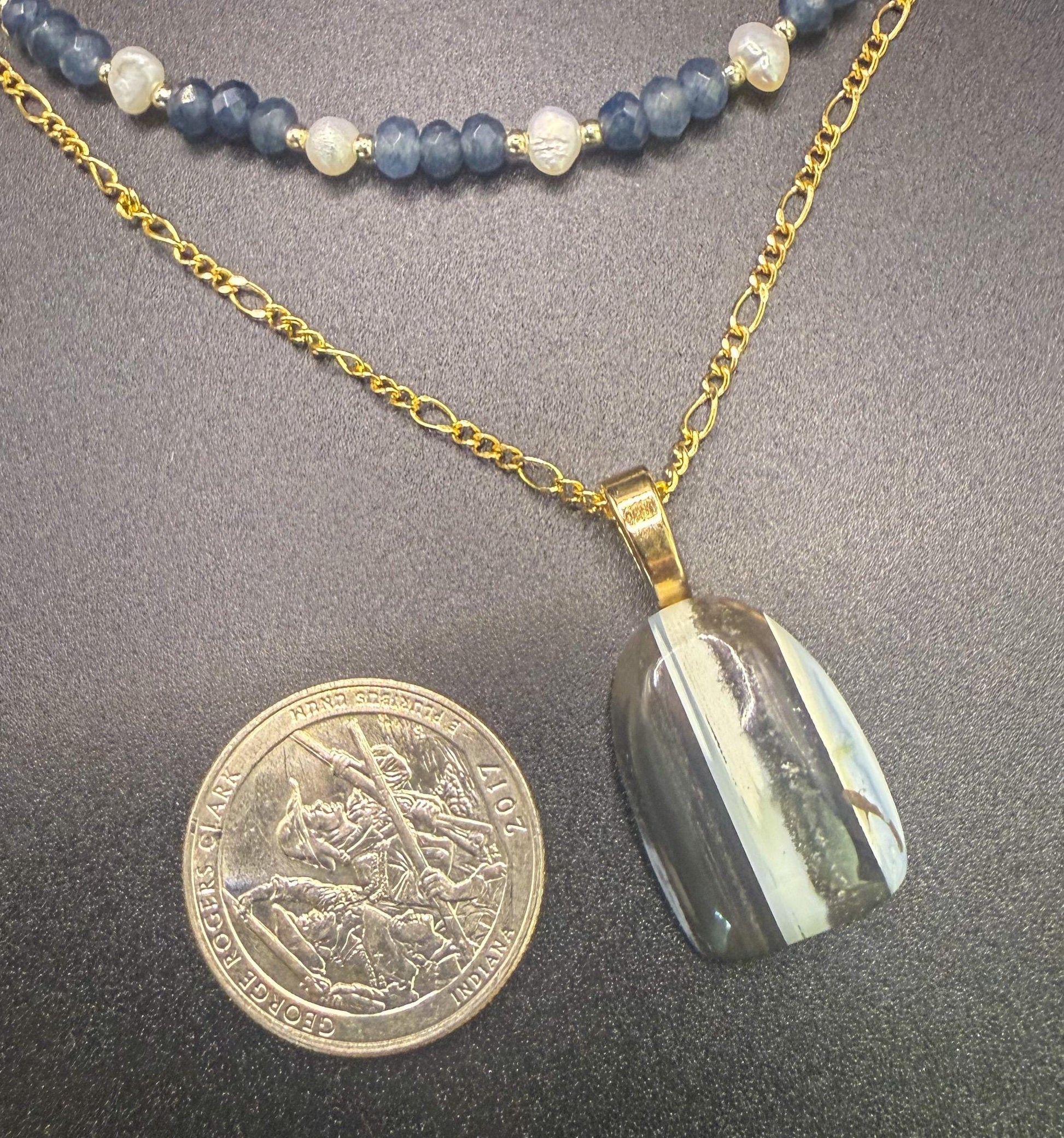 Blue Opal Pendant- Freshwater Pearl, Amazonite, Labradorite and Agate Necklace