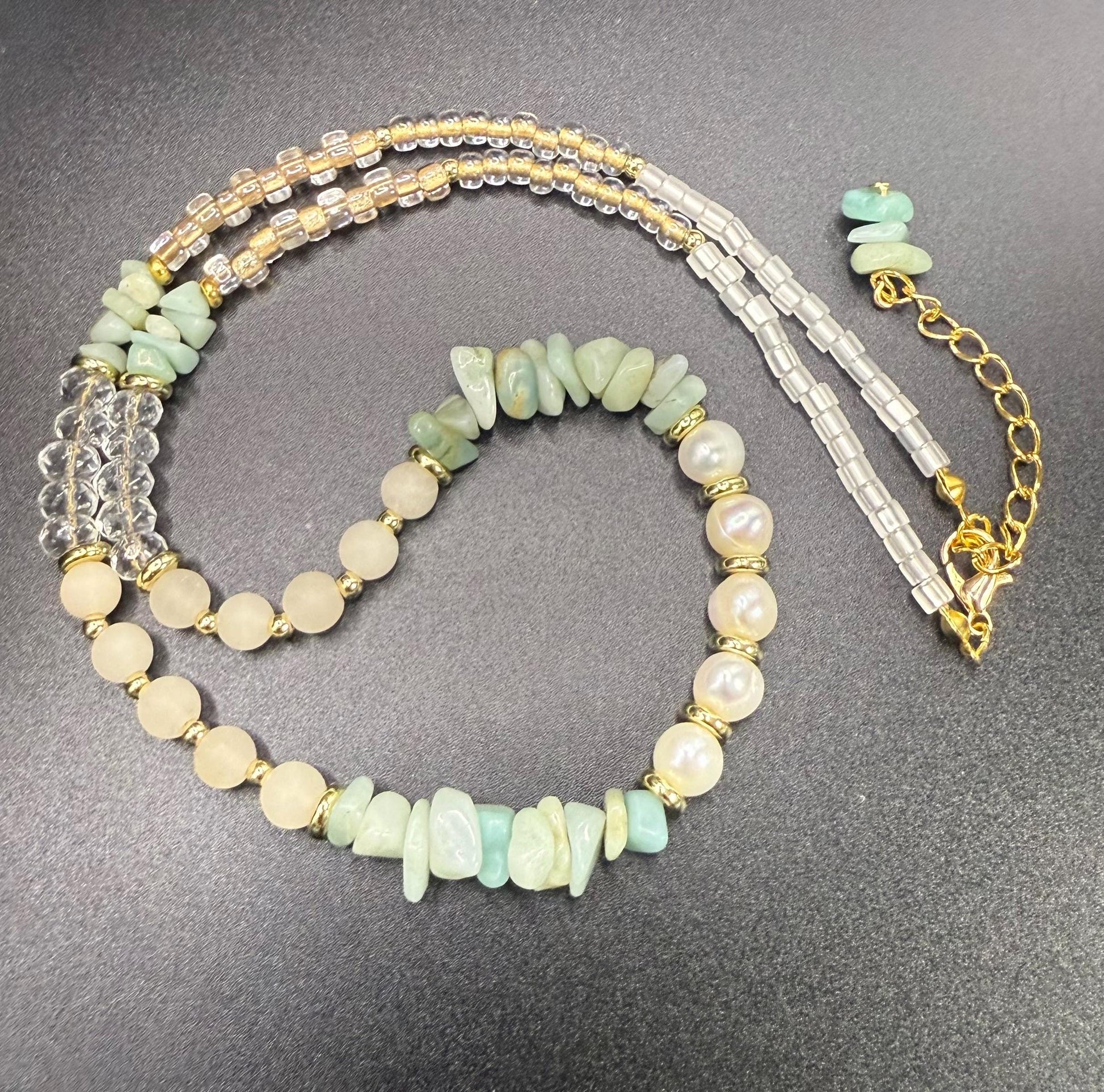 Freshwater Pearl Necklace with Aventurine and Jasper